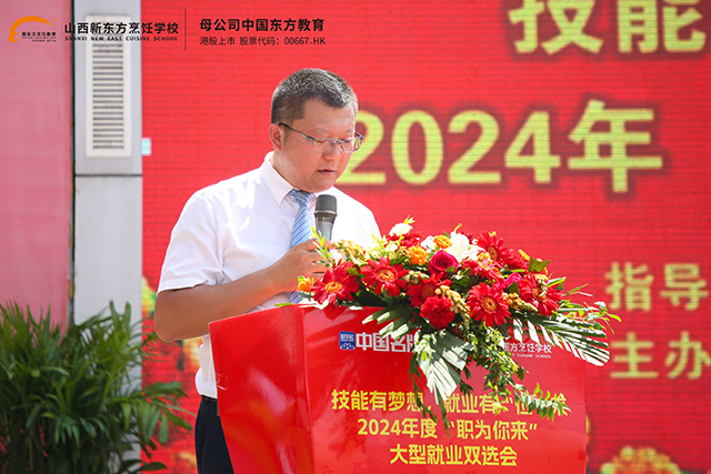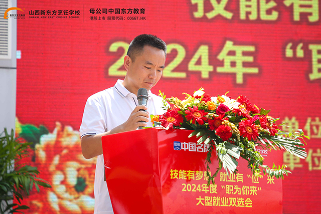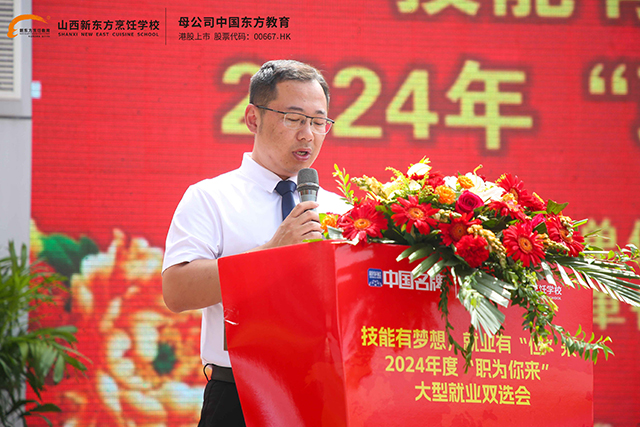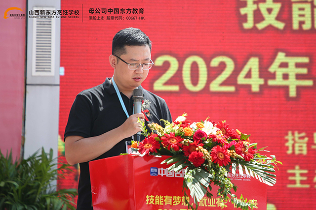 隨后山西天星海歸海餐飲集團(tuán)有限公司人力總監(jiān)高向宇代表合作企業(yè)感謝學(xué)校提供了這么好的推介平臺(tái),并表示山西新東方辦學(xué)多年來,始終堅(jiān)持“以市場(chǎng)為導(dǎo)向,以就業(yè)為目標(biāo)”的理念,緊密跟蹤行業(yè)動(dòng)態(tài),不斷優(yōu)化課程設(shè)置,為社會(huì)輸送了一批又一批專業(yè)技能過硬、創(chuàng)新能力突出的烹飪?nèi)瞬牛瑸槠髽I(yè)的快速發(fā)展注入了強(qiáng)大動(dòng)力。高總監(jiān)說,作為合作企業(yè),將繼續(xù)深化與學(xué)校的合作,共同探索更多元化、更深層次的合作模式,如共建實(shí)訓(xùn)基地、聯(lián)合舉辦技能競(jìng)賽、開展行業(yè)講座等,以進(jìn)一步提升學(xué)生的專業(yè)技能和職業(yè)素養(yǎng),為企業(yè)的發(fā)展注入新的動(dòng)力。