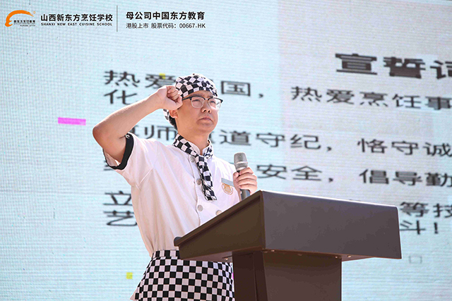 開學(xué)第一課上, 山西新東方烹飪學(xué)校于曉曦校長以“職教美好,人人出彩”為題,對2024級新生寄予了深切的關(guān)懷和殷切的教誨。于校長先代表學(xué)校對全體新生表示熱烈的歡迎,并表示每一位同學(xué)年輕有朝氣,無論曾經(jīng)如何都已成為過去式,來到學(xué)校開啟新的篇章,希望同學(xué)們相信自己,相信在職業(yè)教育的廣闊天地里,每一個懷揣夢想的學(xué)子都能找到屬于自己的舞臺,綻放出耀眼的光芒。