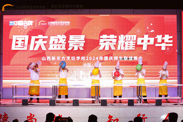 山西新東方烹飪學(xué)校于9月25晚舉辦“迎新生·慶國(guó)慶”文藝晚會(huì)。晚會(huì)現(xiàn)場(chǎng),燈光璀璨,氛圍熱烈歡快。節(jié)目形式多樣,內(nèi)容豐富,既有傳統(tǒng)藝術(shù)的魅力展現(xiàn),也有現(xiàn)代文化的創(chuàng)新演繹,充分展現(xiàn)了