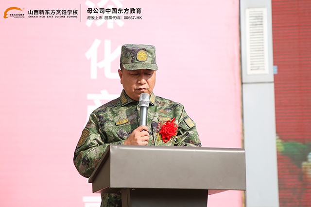 山西新東方校區(qū)負(fù)責(zé)人對(duì)承訓(xùn)部隊(duì)表示崇高的敬意和衷心的感謝。繼而詳細(xì)闡述了軍訓(xùn)對(duì)新生的重要意義并對(duì)全體新生提出殷切期盼,希望同學(xué)們?cè)谲娪?xùn)過程中做到三立:一是立形,要在軍訓(xùn)中外樹形象,內(nèi)塑品質(zhì);二是立心,要在軍訓(xùn)中安心訓(xùn)練,潛心求學(xué);三是立志,要在軍訓(xùn)中追求探索,志存高遠(yuǎn)。用軍訓(xùn)第一課為職校生活鋪墊最好的基礎(chǔ),在這里,遇見更好的自己。最后,廖主任希望全體老師和后勤人員熱情做好服務(wù)工作,為本次軍訓(xùn)的圓滿成功助力。