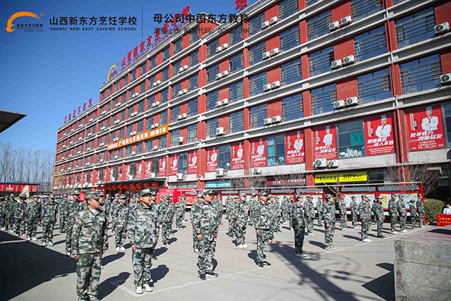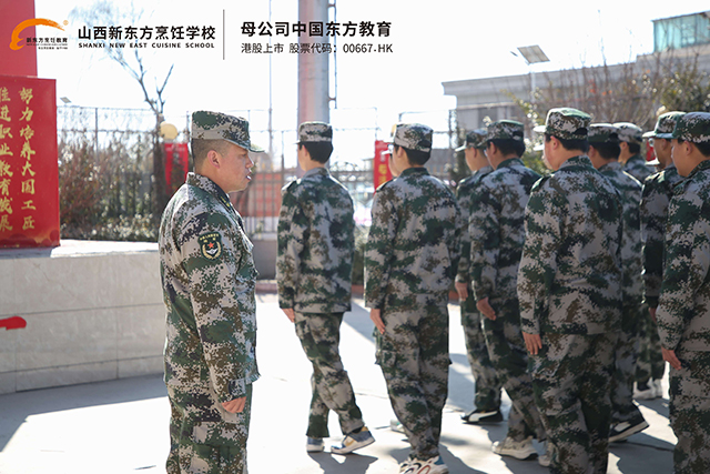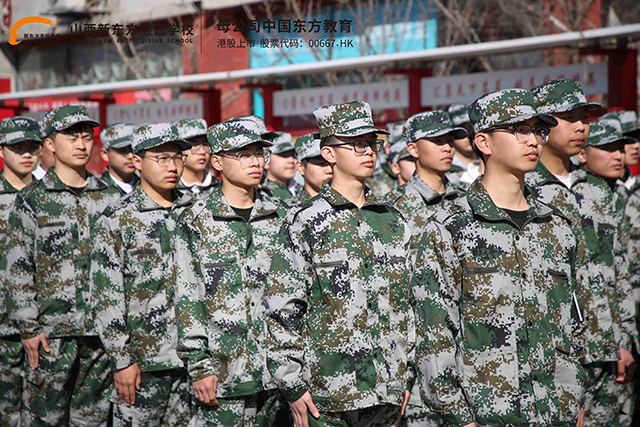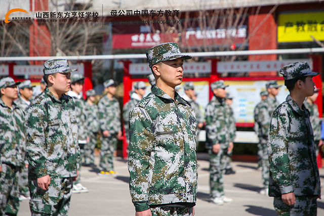 山西新東方職校2025級(jí)新生軍訓(xùn)開(kāi)營(yíng)儀式在我校教學(xué)樓前舉行。