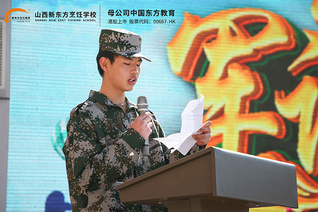 小店校區(qū)負(fù)責(zé)人對(duì)2025級(jí)新生表示了親切的問(wèn)候和熱烈的歡迎,向大力支持學(xué)校軍訓(xùn)工作的教官表示衷心的感謝!廖主任暖心寄語(yǔ)新生,“軍訓(xùn)是大家入校后面對(duì)的一次重要考驗(yàn),是開(kāi)啟職校階段學(xué)習(xí)的重要一課,也是大家接受?chē)?guó)防教育、組織紀(jì)律和艱苦挫折教育的基本形式。希望同學(xué)們?cè)诒敬诬娪?xùn)中要有所啟迪,提高政治思想覺(jué)悟,加強(qiáng)‘愛(ài)我中華’和‘強(qiáng)我國(guó)防’的使命感;同學(xué)們還要不斷學(xué)習(xí),掌握一定的軍事知識(shí)和技能,為祖國(guó)的繁榮昌盛和強(qiáng)大而學(xué)習(xí);同學(xué)們更要形成高尚的作風(fēng)和道德情操,鍛煉自身體魄,增強(qiáng)集體主義精神和紀(jì)律觀念,提高自身綜合素質(zhì),展現(xiàn)山西新東方學(xué)子應(yīng)有的精神風(fēng)貌”。