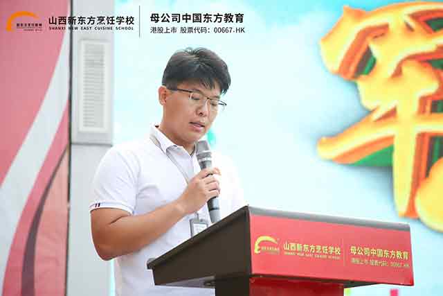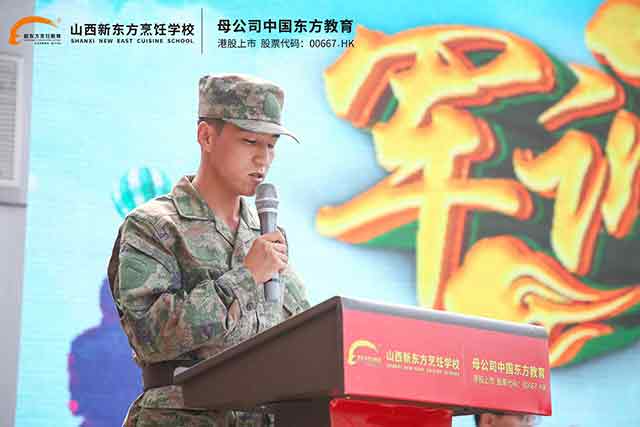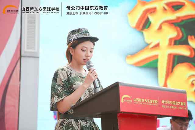參訓(xùn)新生代表首先發(fā)言,她表示,能夠加入山西新東方職校這個大家庭,內(nèi)心充滿激動與期待。“早就聽說軍訓(xùn)是學(xué)校的‘開學(xué)第一課’,是鍛煉意志、培養(yǎng)紀(jì)律性的好機會。”她代表全體新生承諾,將以積極的態(tài)度投入軍訓(xùn),嚴(yán)格遵守紀(jì)律,聽從教官指揮,不怕苦、不怕累,在訓(xùn)練中錘煉堅韌品格,學(xué)會團結(jié)協(xié)作,為未來的技能學(xué)習(xí)打下堅實的素養(yǎng)基礎(chǔ)。