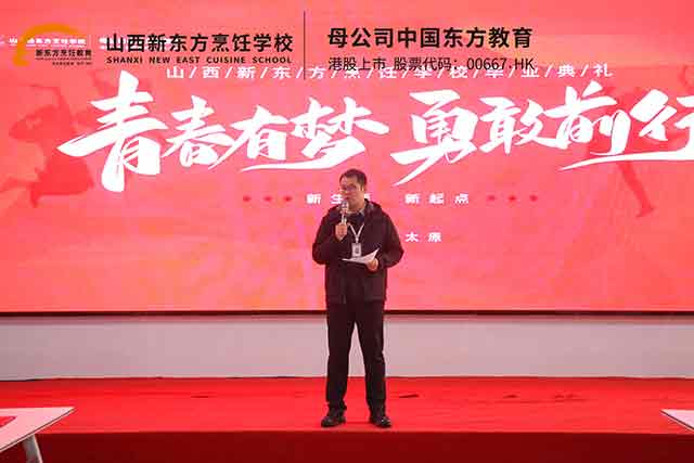 “從握不穩(wěn)菜刀的青澀新生,到能獨立烹制一桌宴席的準廚師,山西新東方見證了我們的每一步成長。”畢業(yè)生代表滿懷深情地說道。他細數(shù)了課堂上老師的悉心指導(dǎo)、實訓中同窗的并肩協(xié)作,分享了從刀工練習到菜品研發(fā)的點滴收獲。“母校教會我們的不僅是烹飪技藝,更是精益求精的匠人精神。如今我們即將奔赴學校推薦的工作崗位,必將帶著這份底氣與信念,用心做好每一道菜,不辜負母校的培養(yǎng)。期待未來與恩師、同窗頂峰相見,共話廚壇榮光!”