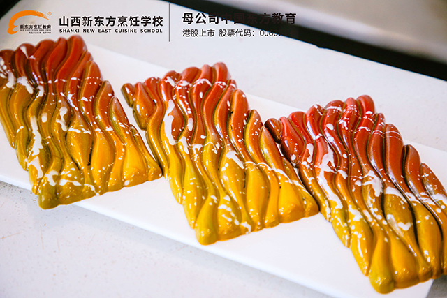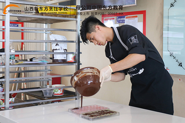 山西新東方烹飪學(xué)校“大師進(jìn)校園”活動特聘請到上海第21屆焙烤"戴妃杯”河南區(qū)巧克力金獎獲得者;第八屆全國飯店職業(yè)技能大賽河南區(qū)金獎獲得者;可可百利世界巧克力大師賽中國區(qū)季軍獲得者——王鵬飛大師走進(jìn)我校,從技能、創(chuàng)造力、個人信念出發(fā),帶領(lǐng)我校西點(diǎn)學(xué)生解構(gòu)復(fù)雜的巧克力理論,并傳授多種調(diào)溫方式與細(xì)節(jié)技法,深入淺出講解多年潛心鉆研的巧克力經(jīng)驗。同學(xué)們在欣賞巧克力大師的同時,更加用心記錄大師的每一個步驟與細(xì)節(jié)。
