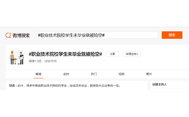 2021年12月12日23點(diǎn)30分,央視財(cái)經(jīng)官方微博發(fā)布了這樣條微博:如今,很多中高級(jí)職業(yè)技術(shù)院校的學(xué)生,往往還未畢業(yè),就被各大企業(yè)爭(zhēng)搶一空。