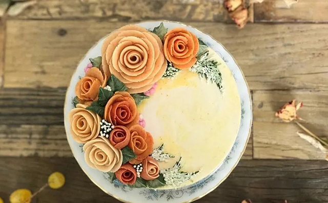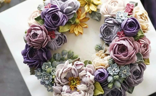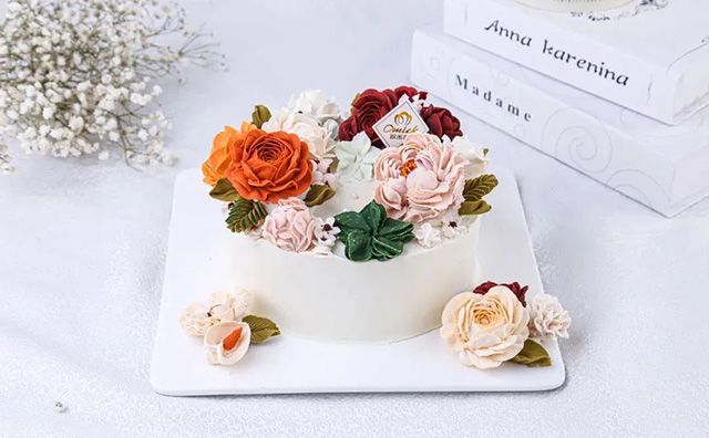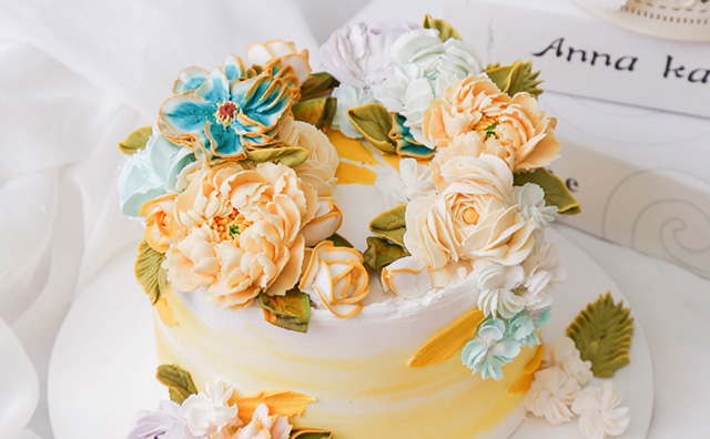 玫瑰花、旋轉(zhuǎn)玫瑰、五瓣花、康乃馨、牡丹、紅掌、康乃馨、百合花、向日葵、大麗花練習及花式整款蛋糕制作等